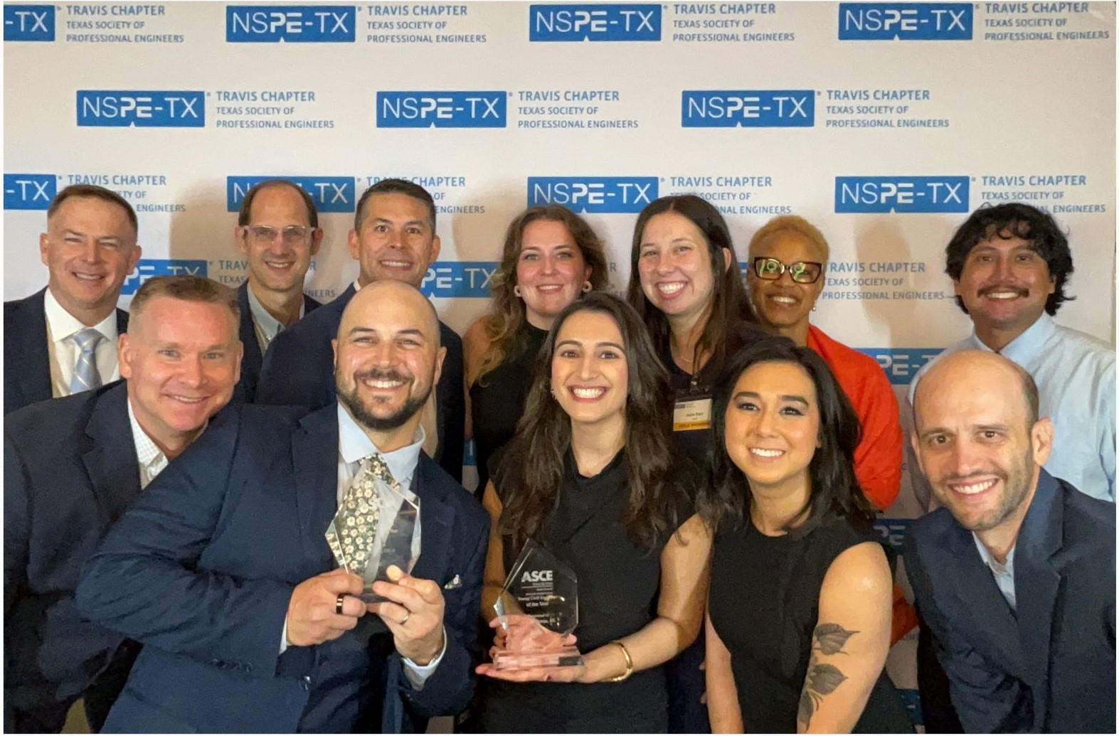 RJ Endsley was honored by the ASCE Austin Branch as the Engineer of the Year at the 2026 EWeek Banquet with other Halff team members in attendance.